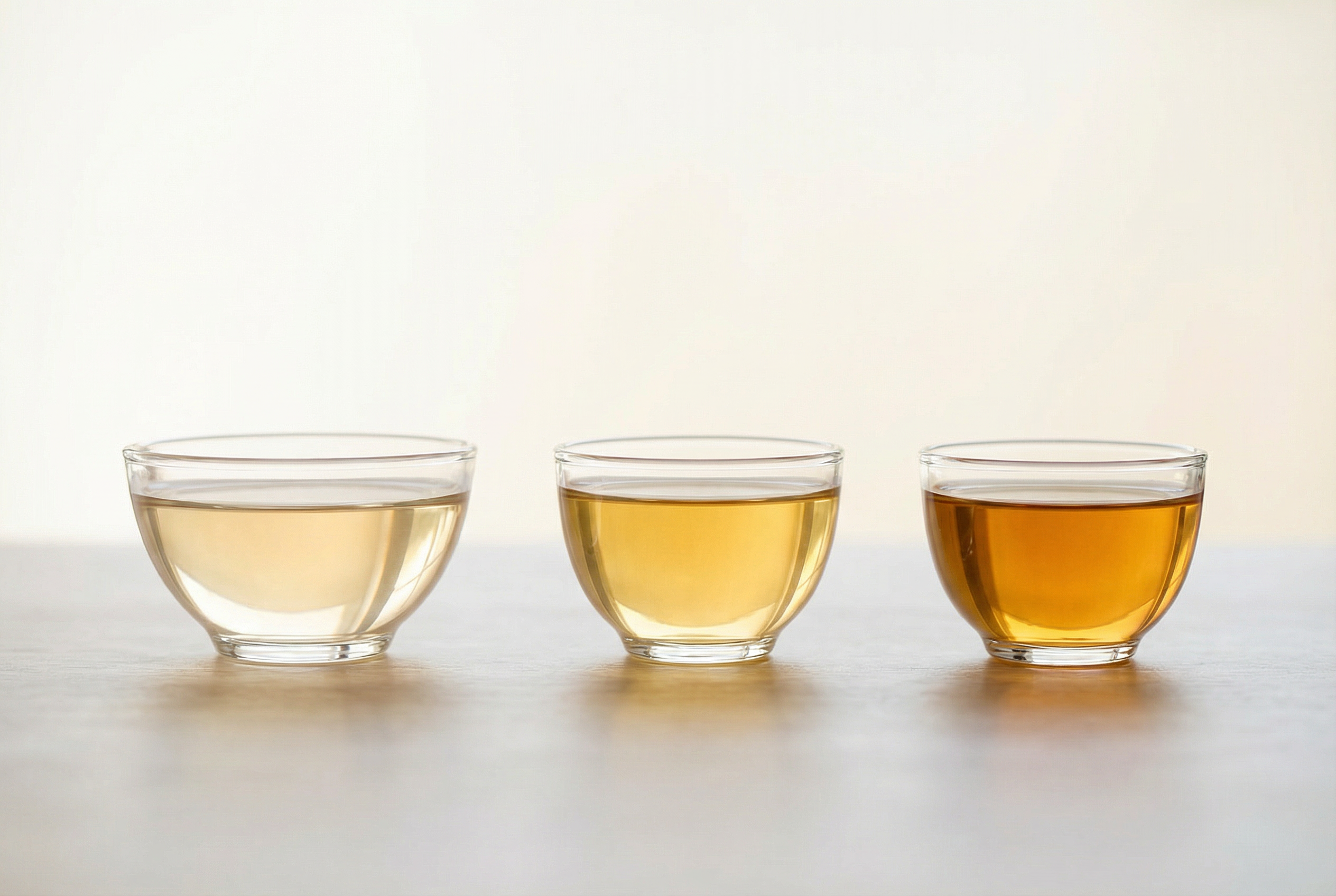 清香型(輕焙火 / 不焙火):保留了茶葉最原始的花香和清甜感。茶湯顏色偏金黃、透亮。