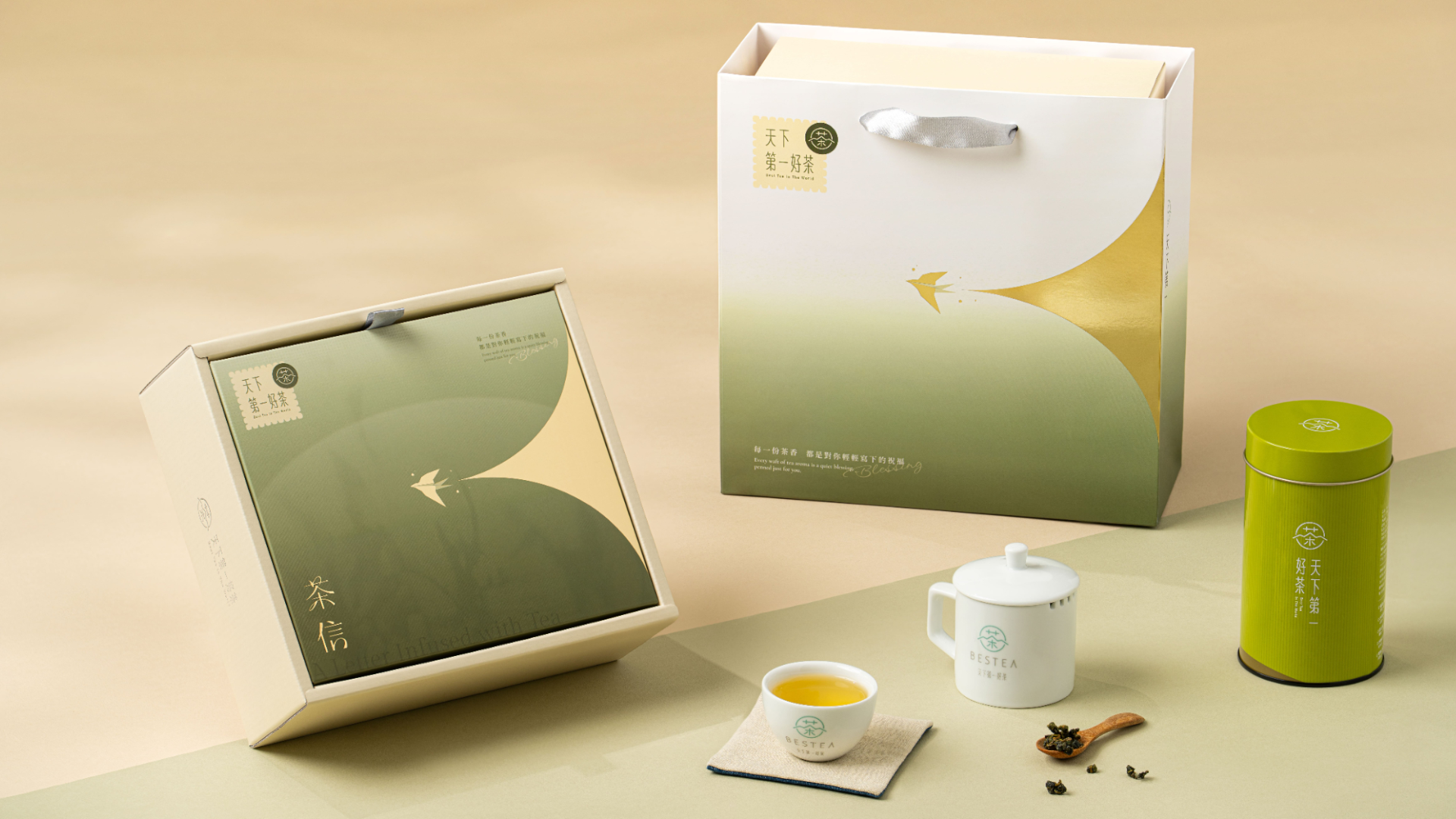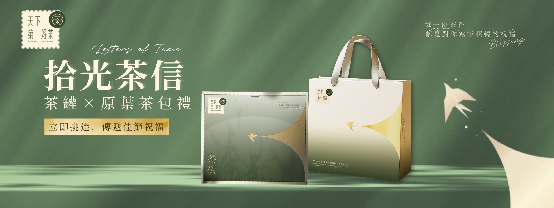 「拾光茶信」—— 一封承載茶香的祝福。靈感取自群山清風與林間靜謐,盒身化作郵簡意象,燕子捎來思念,將真摯心意封存於茶香之中。